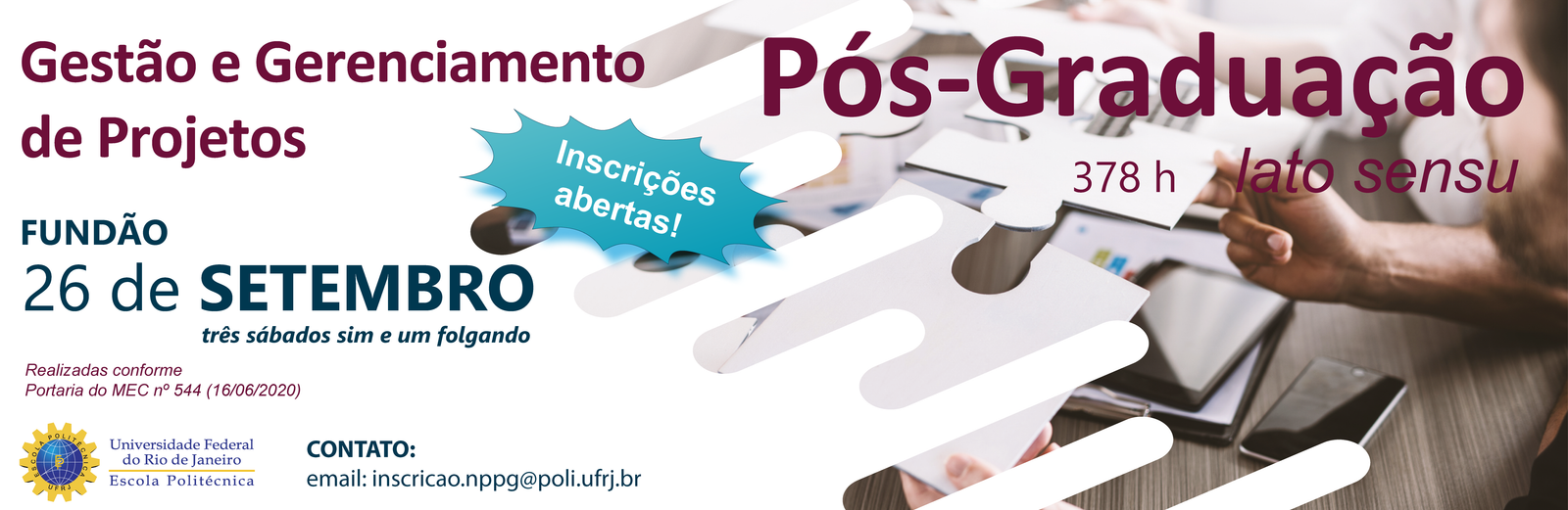 Secretaria Acadêmica: secretaria.nppg@poli.ufrj.br Inscrições: inscricao.nppg@poli.ufrj.br Financeiro: financeiro.nppg@poli.ufrj.br Coordenação Acadêmica: coordenacao.nppg@poli.ufrj.br