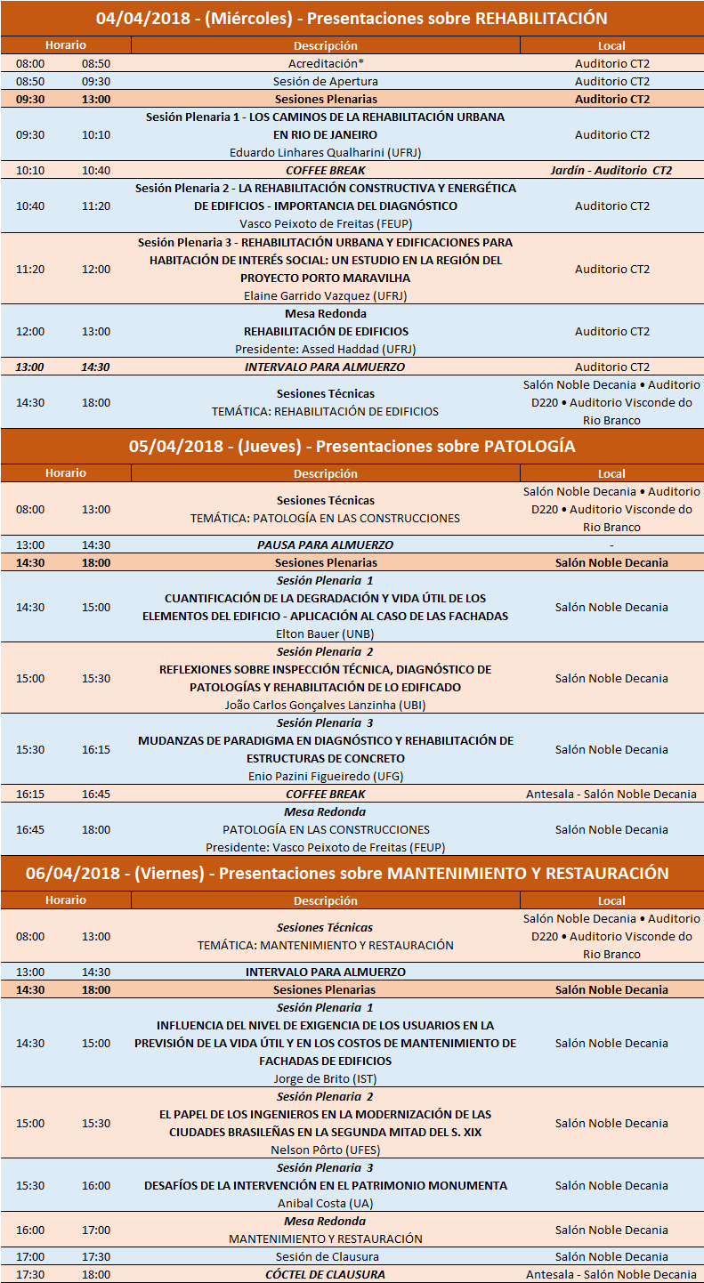 Después de cinco ediciones de éxito, realizadas en Portugal y España, el 6º Congreso de Patología y Rehabilitación de Edificios – PATORREB 2018, se celebrará por primera vez en América Latina, los días 4, 5 y 6 de abril, en la Ciudad Universitaria de la UFRJ, Rio de Janeiro, Brasil.